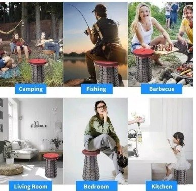 Amplia Aplicación: Este taburete telescópico es perfecto para usar en camping, pesca, senderismo, caza, picnic, barbacoa.