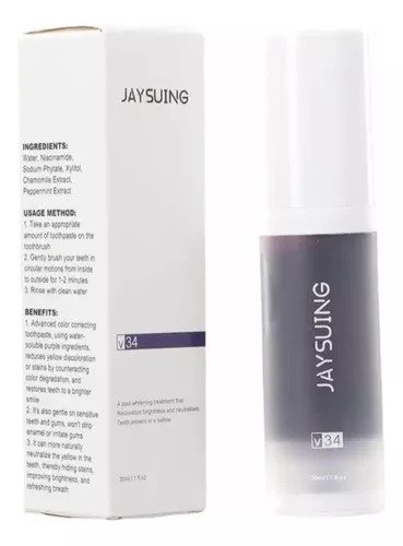 El blanqueador dental de crema morada V34 es una innovadora solución para mejorar el color de los dientes neutralizando los tonos amarillos y proporcionando un efecto de blanqueamiento instantáneo. Su fórmula utiliza la corrección del color con pigmentos violetas para equilibrar las tonalidades y dar una apariencia más brillante y blanca a la sonrisa.