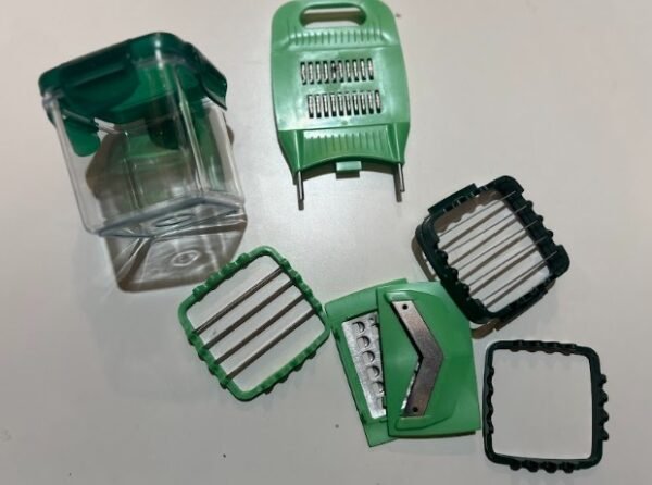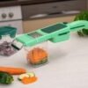 El cortador de verduras cuenta con cuchillas intercambiables que permiten cortar, hacer dados, picar y cortar frutas y verduras. Es la herramienta ideal para preparar comidas caseras de manera más sencilla y rápida.