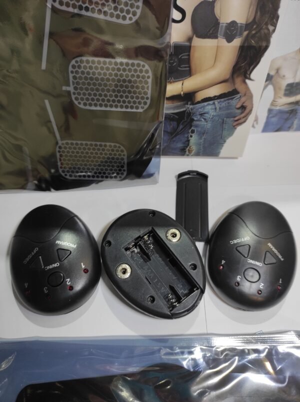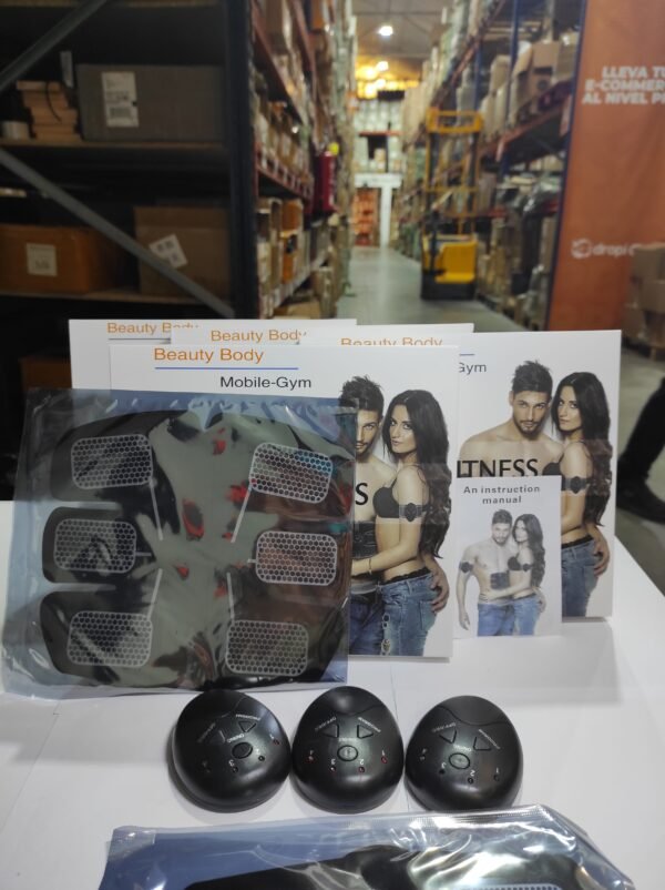 Dispositivo eléctrico diseñado para ayudar a tonificar y fortalecer los músculos del abdomen mediante impulsos eléctricos. Este tipo de aparato se utiliza para simular la contracción muscular natural, proporcionando una estimulación eléctrica directa a los músculos, lo que provoca su activación y contracción, similar a los ejercicios físicos convencionales.
