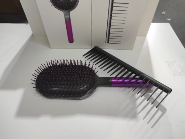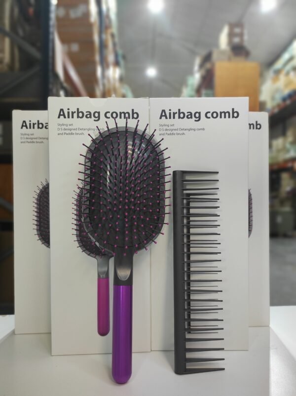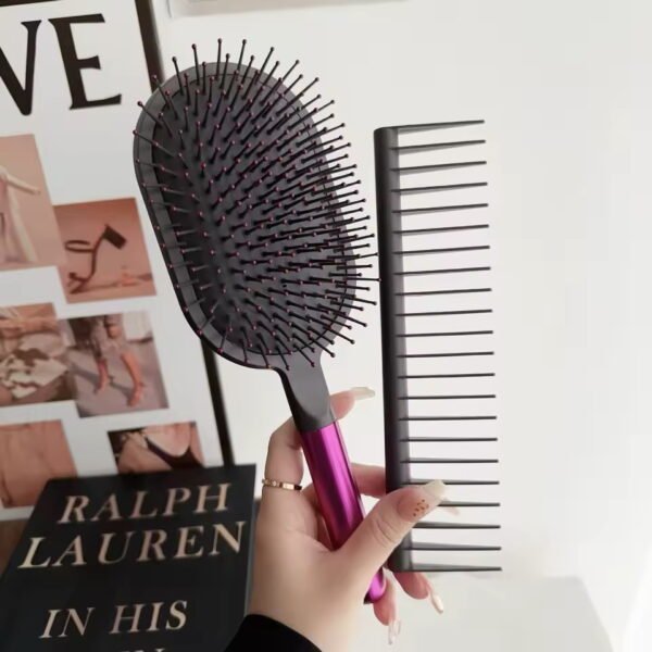 Kit de cepillo y peine desenredante, ideal para cuidar y estilizar el cabello sin tirones. El cepillo cuenta con cerdas flexibles que deslizan suavemente, reduciendo el quiebre y el frizz, mientras que el peine ayuda a separar y desenredar con facilidad. Perfecto para todo tipo de cabello, incluso rizado o fino. Ligero, ergonómico y cómodo de usar en el día a día.