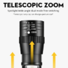 Rango de enfoque ajustable para adaptarse a diferentes propósitos, estire para ajustar su enfoque. El voltaje de funcionamiento es amplio y puede utilizar las baterías en la mayor medida posible.