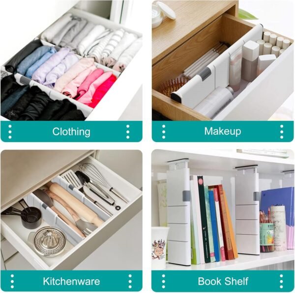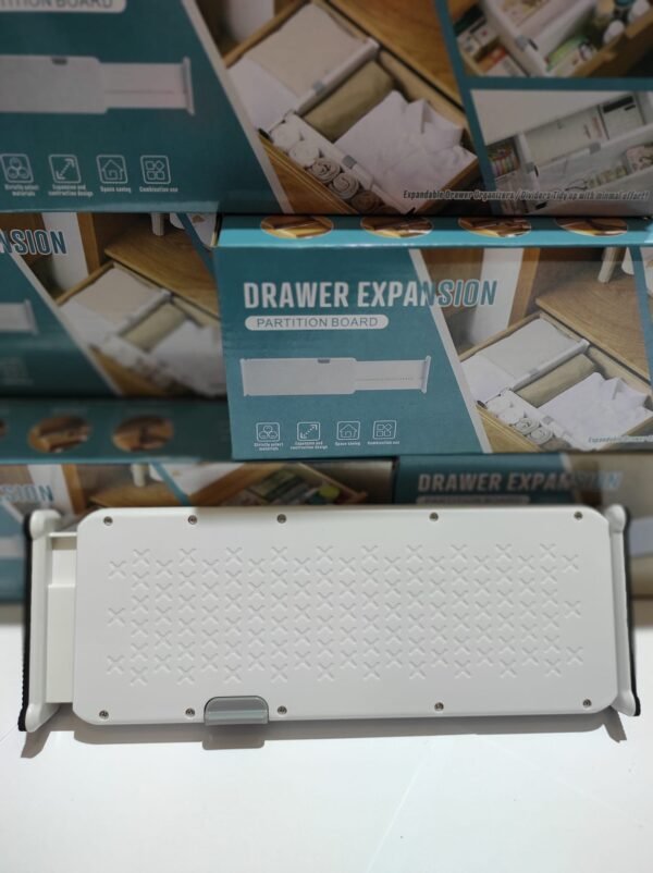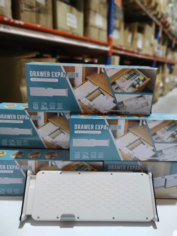 Organiza tu espacio con este separador de cajones ajustable. Su diseño flexible se adapta a diferentes tamaños de cajones, permitiendo dividir y ordenar ropa, utensilios o accesorios fácilmente. Fácil de instalar y hecho con materiales resistentes para un uso duradero.